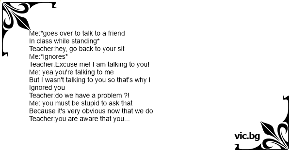 Teacher:*sarcastically says* ok! ok! I started it!(the fight)