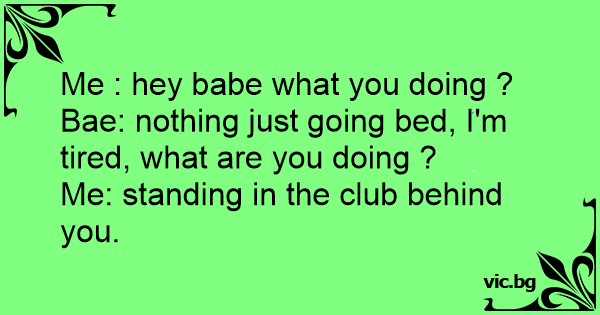 Me : hey ваве what you doing ? Bae: nothing just going bed, I'm tired, what are you doing ?