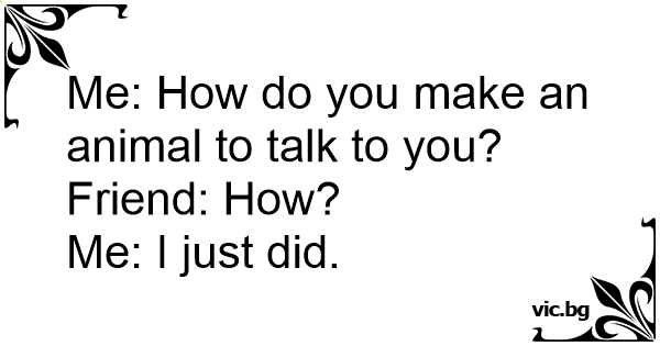 Me: How do you make an animal to talk to you?