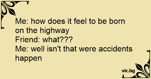 Me: how does it feel to be born on the highway
