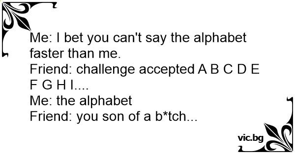 Friend: challenge accepted A B C D E F G H I....