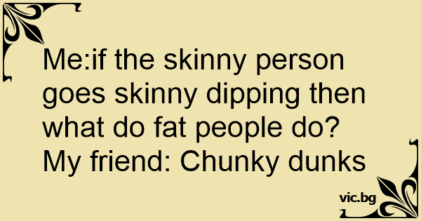 Me:if the skinny person goes skinny dipping then what do fат people do?