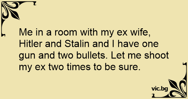 Me in a room with my ex wife, Нiтlеr and Stalin and I have one gun and two bullets. Let me shoot my ex two times to be sure.