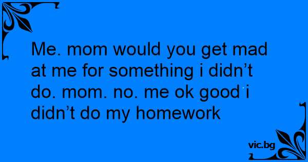Me. mom would you get mad at me for something i didn’t do. mom. no. me ok good i didn’t do my homework
