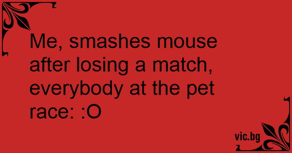 Me, smashes mouse after losing a match, everybody at the pet race: :O