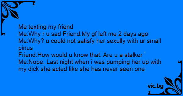 Me:Why r u sad Friend:My gf left me 2 days ago