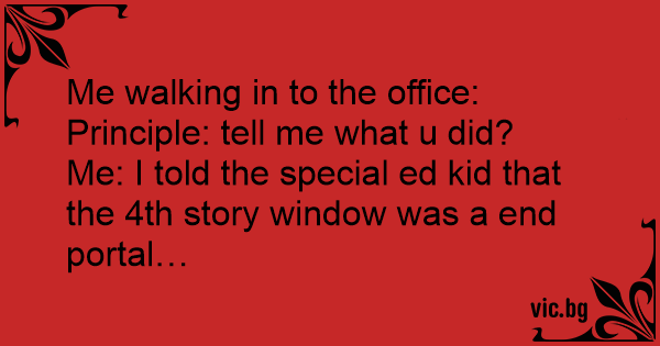 Me: I told the special ed kid that the 4th story window was a end portal…