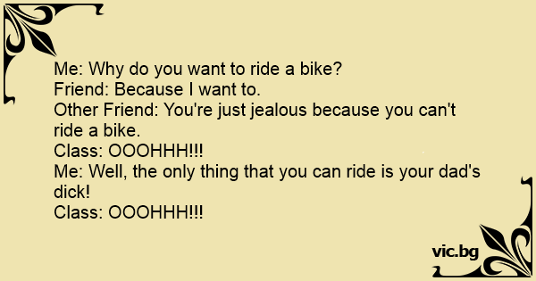 Other Friend: You're just jealous because you can't ride a bike.