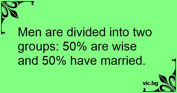 Men are divided into two groups: 50% are wise and 50% have married.