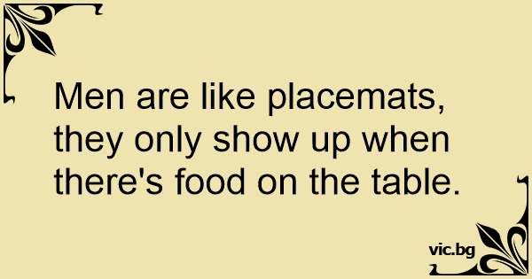 Men are like placemats, they only show up when there's food on the table.