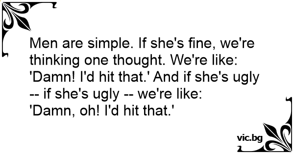 Men are simple. If she's fine, we're thinking one thought. We're like: