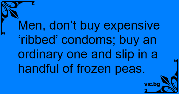 Men, don’t buy expensive ‘ribbed’ condoms; buy an ordinary one and slip in a handful of frozen peas.