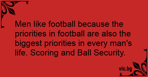 Men like football because the priorities in football are also the biggest priorities in every man's life. Scoring and Ball Security.
