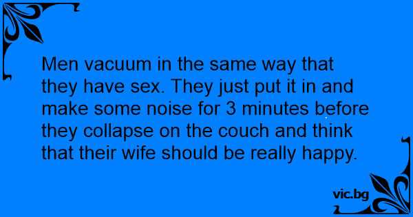 Men vacuum in the same way that they have sеx. They just put it in and make some noise for 3 minutes before they collapse on the couch and think that their wife should be really happy.