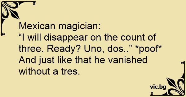 “I will disappear on the count of three. Ready? Uno, dos..” *рооf* And just like that he vanished without a tres.