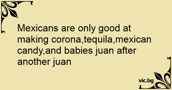 Mexicans are only good at making corona,tequila,mexican candy,and babies juan after another juan
