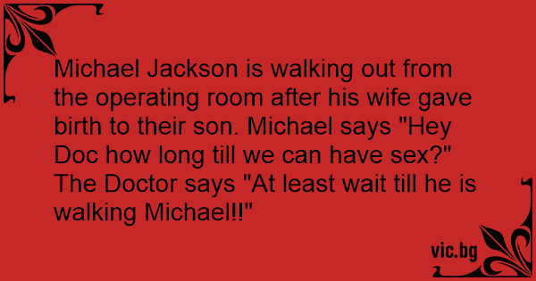 Michael Jackson is walking out from the operating room after his wife gave birth to their son. Michael says "Hey Doc how long till we can have sеx?" The Doctor says "At least wait till he is walking Michael!!"