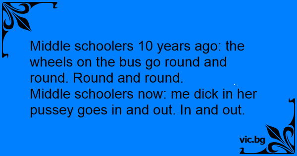 Middle schoolers now: me diск in her pussey goes in and out. In and out.