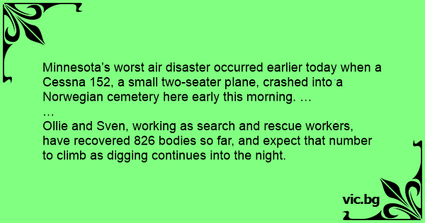 Minnesota’s worst air disaster occurred earlier today when a Cessna 152, a small two-seater plane, crashed into a Norwegian cemetery here early this morning. …