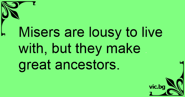 Misers are lousy to live with, but they make great ancestors.