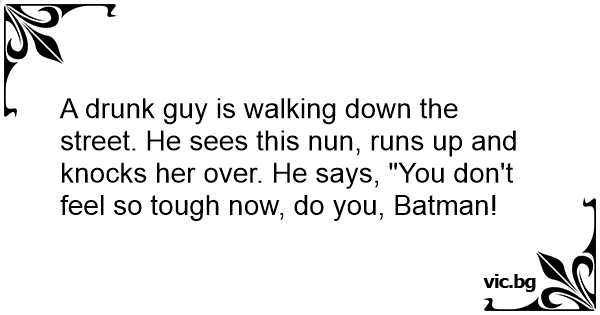 A drunк guy is walking down the street. He sees this nun, runs up and knocks her over. He says, "You don't feel so tough now, do you, Batman!