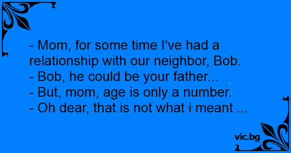 Le dice la hija a su madre, - Mamá estoy saliendo con el vecino. - Hija, podría ser tu padre!! - Mamá la edad ya no importa... - No me estás entendiendo....