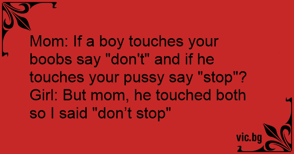 Mom: If a boy touches your воовs say "don't" and if he touches your рussy say "stop"?
