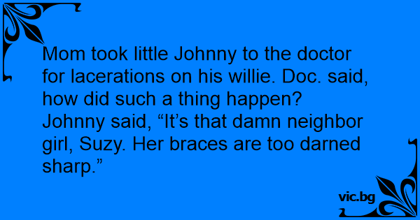 Johnny said, “It’s that dамn neighbor girl, Suzy. Her braces are too darned sharp.”