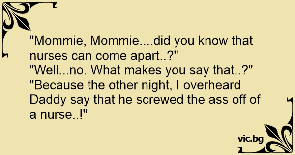 "Mommie, Mommie....did you know that nurses can come apart..?"