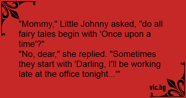 "Mommy," Little Johnny asked, "do all fairy tales begin with 'Once upon a time'?"