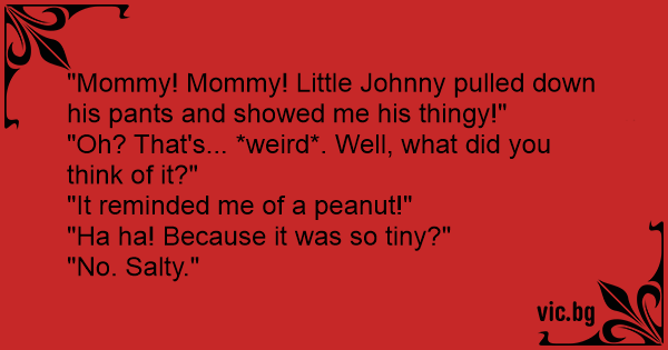 "Mommy! Mommy! Little Johnny pulled down his pants and showed me his thingy!"