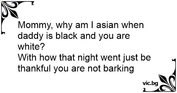 A little boy asked his mother: Mummy, why are you white and I am black? Don’t even ask me that, when I remember that party..., you are lucky that you don’t bark.