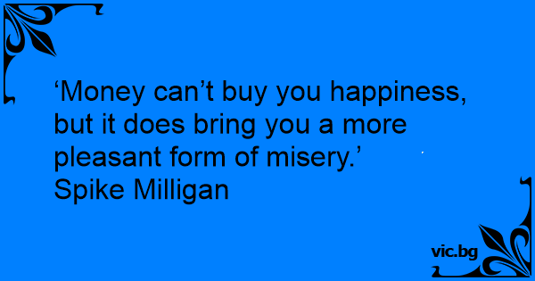 ‘Money can’t buy you happiness, but it does bring you a more pleasant form of misery.’<br />Spike Milligan