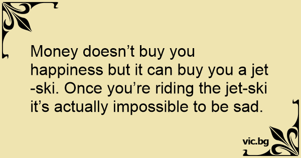 Money doesn’t buy you happiness but it can buy you a jet-ski. Once you’re riding the jet-ski it’s actually impossible to be sad.