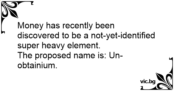 Money has recently been discovered to be a not-yet-identified super heavy element.