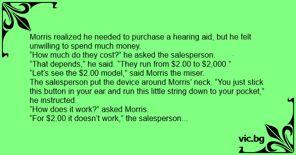 Morris realized he needed to purchase a hearing aid, but he felt unwilling to spend much money.