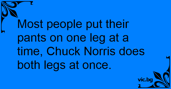 Most people put their pants on one leg at a time, Chuck Norris does both legs at once.