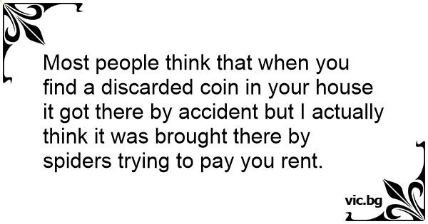 Most people think that when you find a discarded coin in your house it got there by accident but I actually think it was brought there by spiders trying to pay you rent.