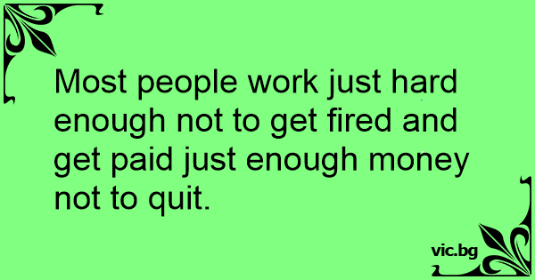Most people work just hard enough not to get fired and get paid just enough money not to quit.