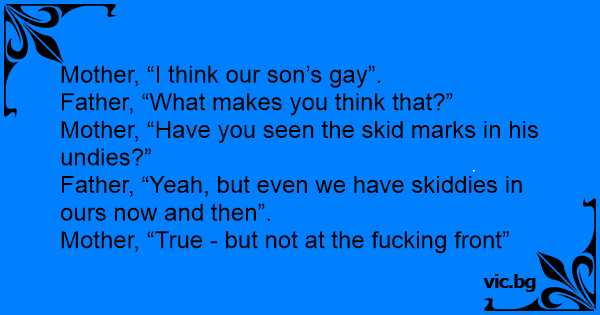 Father, “Yeah, but even we have skiddies in ours now and then”.
