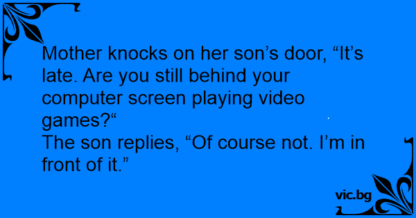 Mother knocks on her son’s door, “It’s late. Are you still behind your computer screen playing video games?“