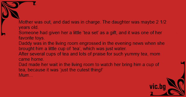Daddy was in the living room engrossed in the evening news when she brought him a little cup of ‘tea’, which was just water.