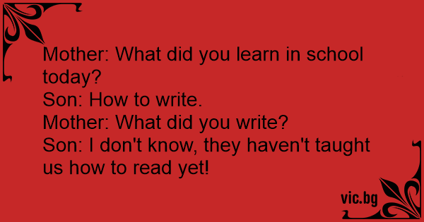 - Pappa, pappa, vi har lärt oss att skriva! - Vad skriver ni då? - Vet inte, vi har inte lärt oss att läsa än.