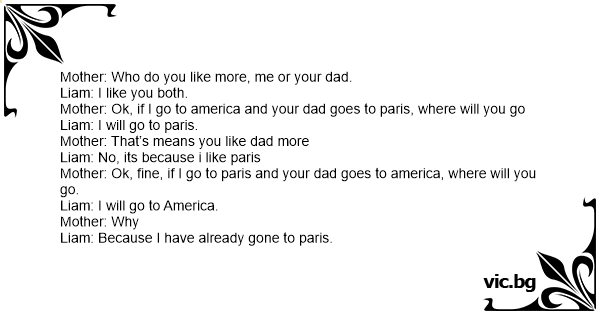 Mother: Who do you like more, me or your dad.