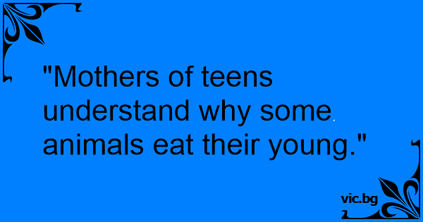 "Mothers of teens understand why some animals eat their young."