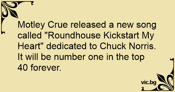Motley Crue released a new song called "Roundhouse Kickstart My Heart" dedicated to Chuck Norris.