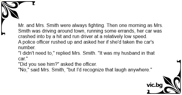 "I didn't need to," replied Mrs. Smith. "It was my husband in that car."