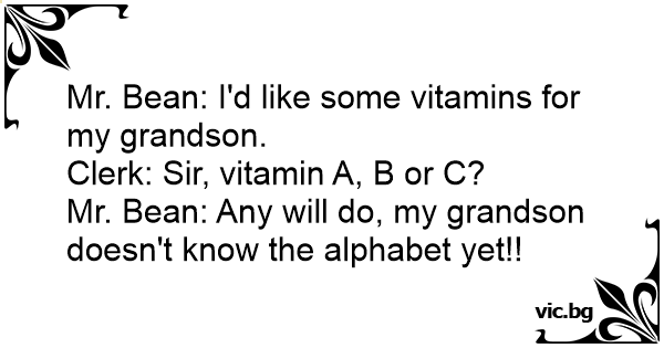 Mr. Bean: Any will do, my grandson doesn't know the alphabet yet!!