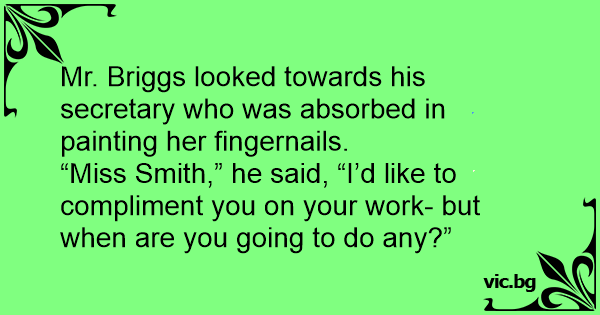 “Miss Smith,” he said, “I’d like to compliment you on your work- but when are you going to do any?”