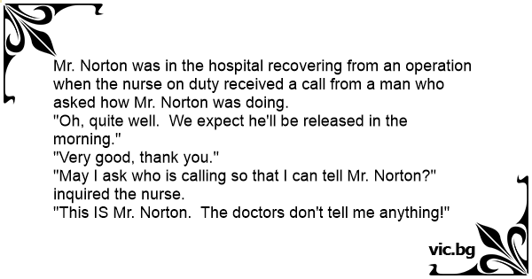 "This IS Mr. Norton. The doctors don't tell me anything!"